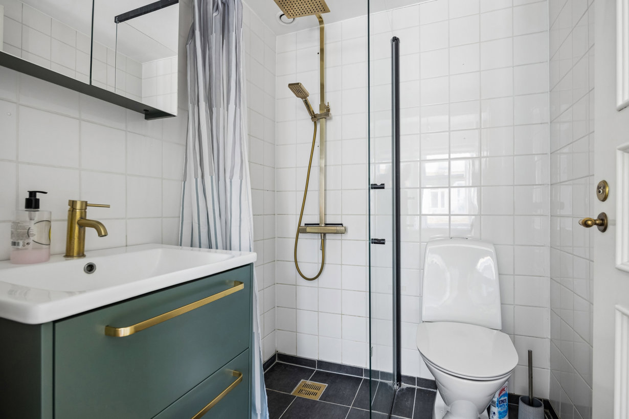 - Nyere badeværelse med messingdetaljer