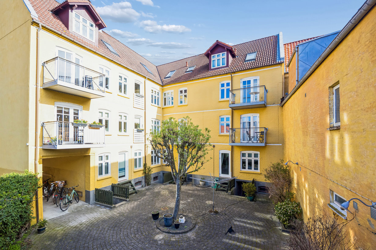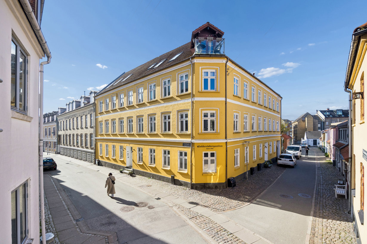 Du kommer til at bo centralt i Aalborg i en af byens hyggeligste og mest charmerende gader, hvor de ikoniske byhuse skaber en helt særlig stemning. Klokkestøbergaarden er kendt blandt aalborgensere for sin sydlandske charme og rolige atmosfære – midt i byen, men alligevel tilbagetrukket fra støj.
