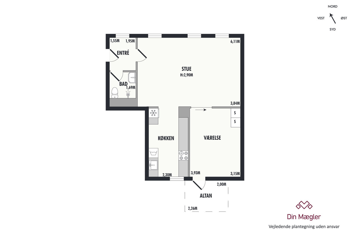 Charmerende 2 værelses med sydvendt altan og få skridt til bylivet